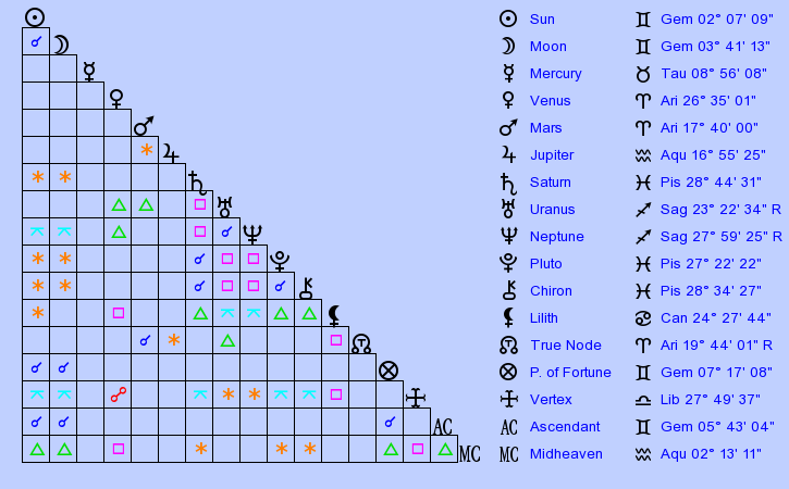 You have a hard time seeing things from another persons point of view as it is difficult for you to remove yourself and foster objectivity; you tend to disregard opposing approaches. In your eyes, there is only one right way to do something: your way. Relating to the situation that another might be in does not come naturally to you. You may have the desire to, though you find yourself unable. You act on impulse and would do well to develop emotional self-control for the tensions that dwell within you. Your feelings can be delicate sometimes and you may not always keep in mind the consequences your behaviour will have on others. It is not that you mean to be cruel, only that you are unaware. Energy and will-power is usually stronger with this placement. However, it is important to take time out to relax and recover. The Suns force can eclipse the characteristics of the moon. There may be a tendency to scatter your energies doing too many things at once. You would do well to foster a more patient, dedicated attitude.