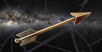 For the header of this website, I simply used the image of an arrow – in this case a small accessory instead of a proper warrior’s arrow. Its shape is such that it’s obvious how the symbol for Sagittarius is composed. The background is a galaxy in outer space, as a reminder of the Sagittarius trait of always wanting to go far, far away.